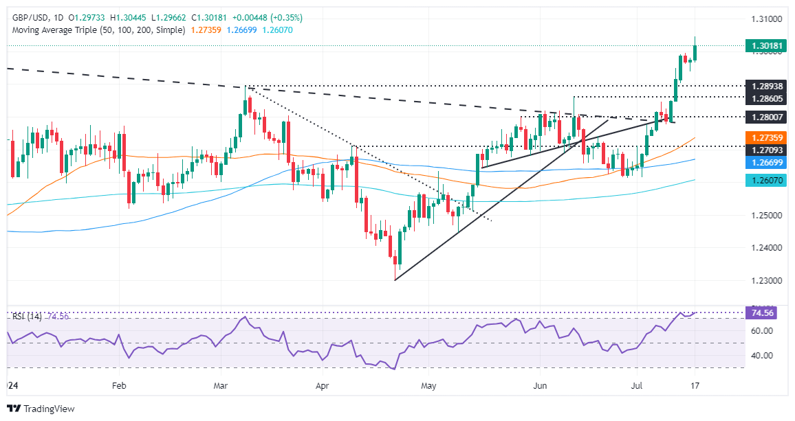 - GBP/USD breaches 1.3000 for the first time since July 2023.