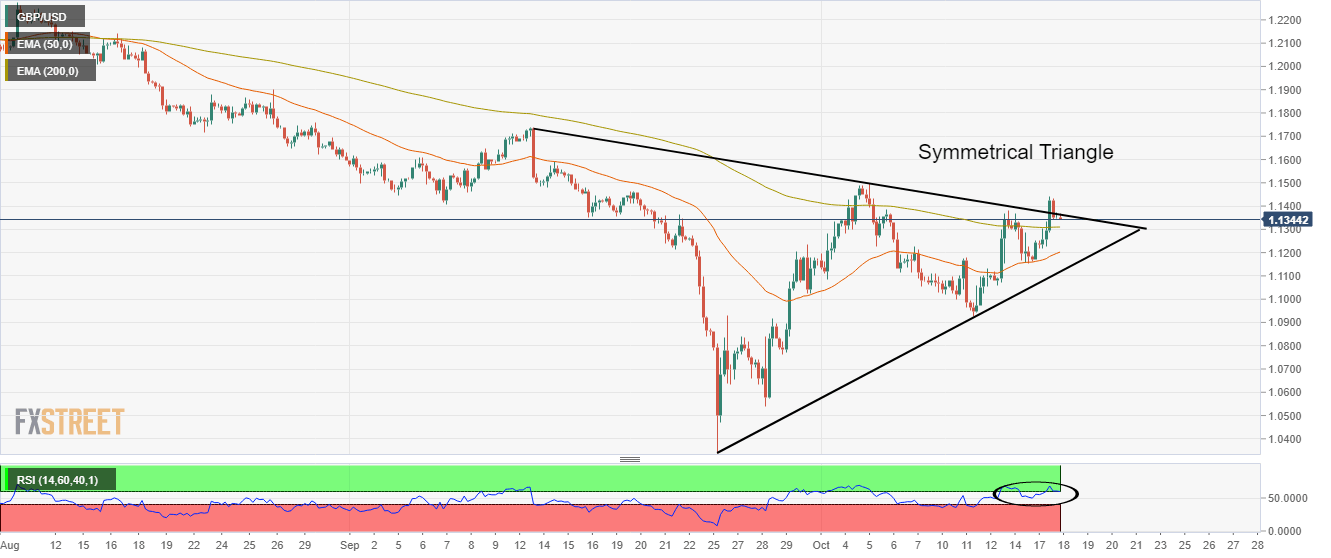 GBP/USD Price Analysis: Tests the upside break of triangle near 1.1350
