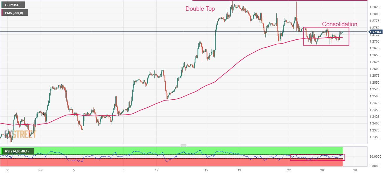 The GBP/USD pair is trading back and forth in a narrow range of 1.2700-1.2750 in the early London session. The upside in the Cable is restricted as higher inflationary pressures in the United Kingdom have dampened its economic outlook while the downside is supported due to correction in the US Dollar Index (DXY).