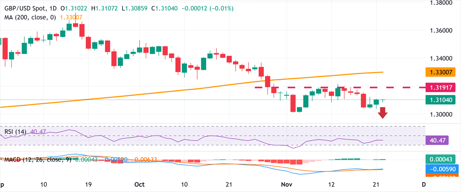 The GBP/USD pair reverses a modest Asian session dip and climbs back above the 1.3100 mark in the last hour amid a modest US Dollar (USD) downtick on Monday. However, the uncertainty surrounding the upcoming UK budget and rising bets for an interest rate cut by the Bank of England (BoE) next month should act as a headwind for spot prices.