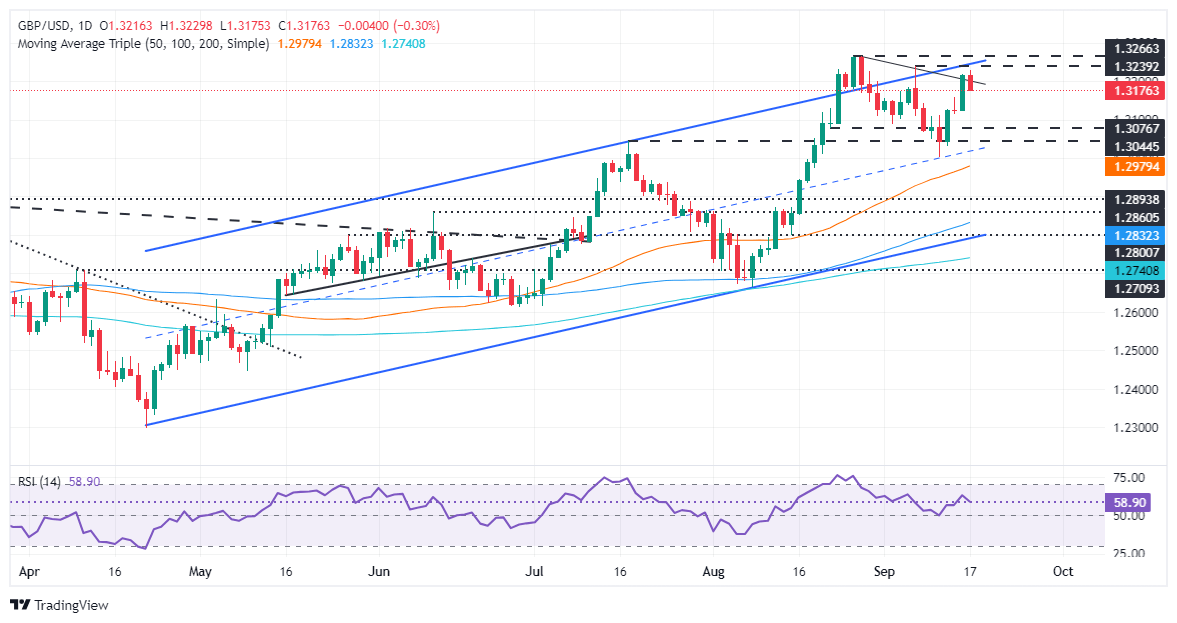 The British Pound erased its earlier gains and dropped below 1.3200 against the Greenback after the US Census Bureau reported stronger-than-expected US Retail Sales. Even though the data didn’t change expectations for a 50-basis points (bps) Fed rate cut, the GBP/USD posted losses of over 0.20% and exchanged hands at 1.3186.