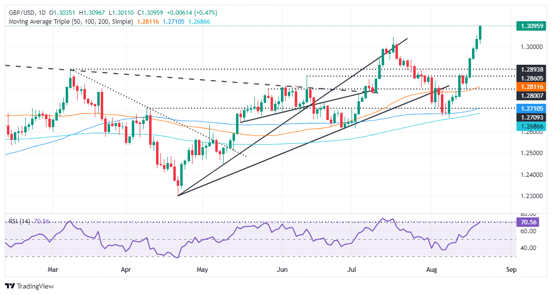 GBP/USD Price Forecast: Rises on weak US Dollar, eyes 1.3100