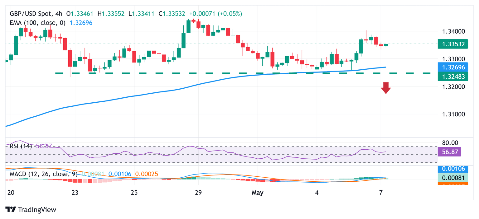 The GBP/USD pair attracts some sellers during the Asian session on Wednesday and erodes a part of its weekly gains registered over the past two days, to the 1.3400 mark. The intraday slide is sponsored by a modest US Dollar (USD) strength and drags spot prices below mid-1.3300s in the last hour.