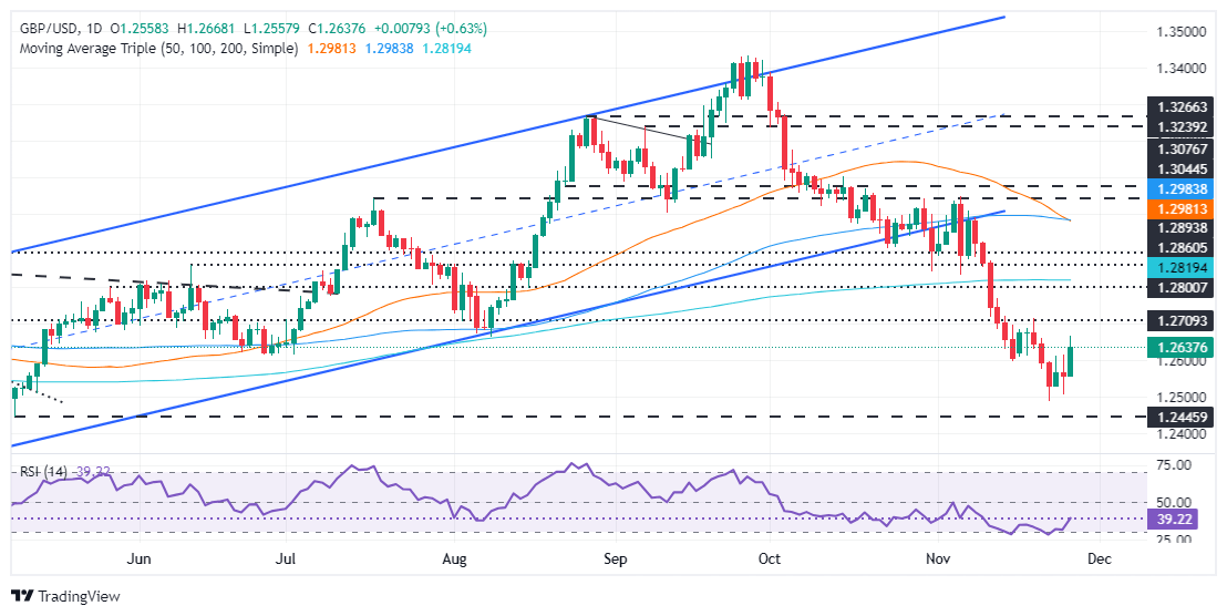 - GBP/USD rallies to a four-day high of 1.2667, trading at 1.2646 at the time of writing, up 0.64% daily.
