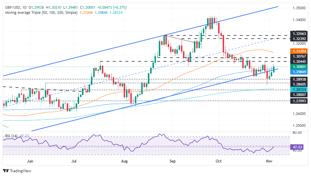 The Pound Sterling advanced against the Greenback during the North American session, with buyers reclaiming the 1.3000 figure and clearing the 100-day Simple Moving Average (SMA) resistance at 1.2982. At the time of writing, the GBP/USD trades at 1.3011, up by 0.43%.