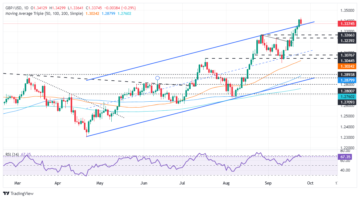 - Maintaining above 1.3363 could push GBP/USD to retest the yearly high of 1.3429 and aim for 1.3437, 1.3450, and 1.3500.