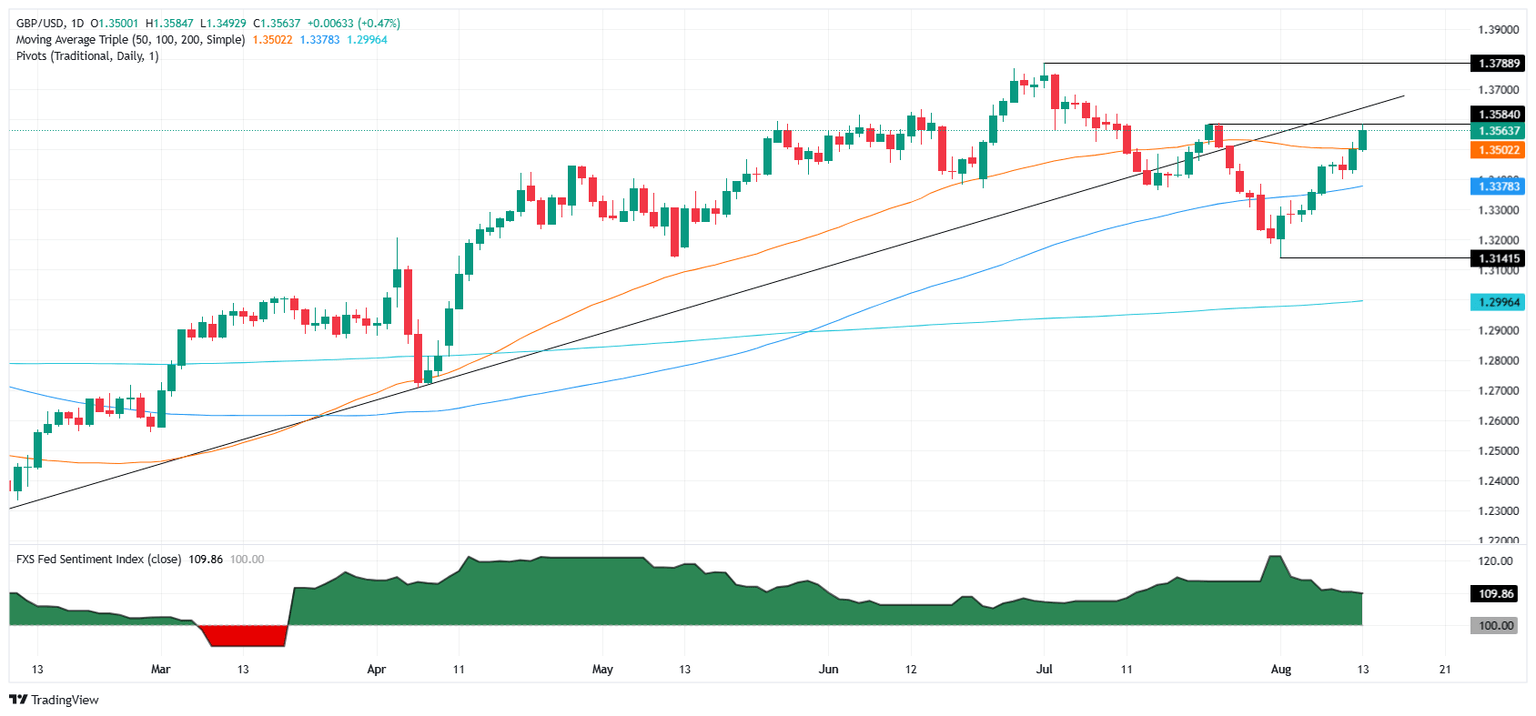 The GBP/USD pair advances during the North American session, up by 0.56% as the US Dollar (USD) gets battered amid increasing bets that the Federal Reserve (Fed) might resume its easing cycle as soon as September. The pair trades at 1.3572 after bouncing off lows of 1.3487.