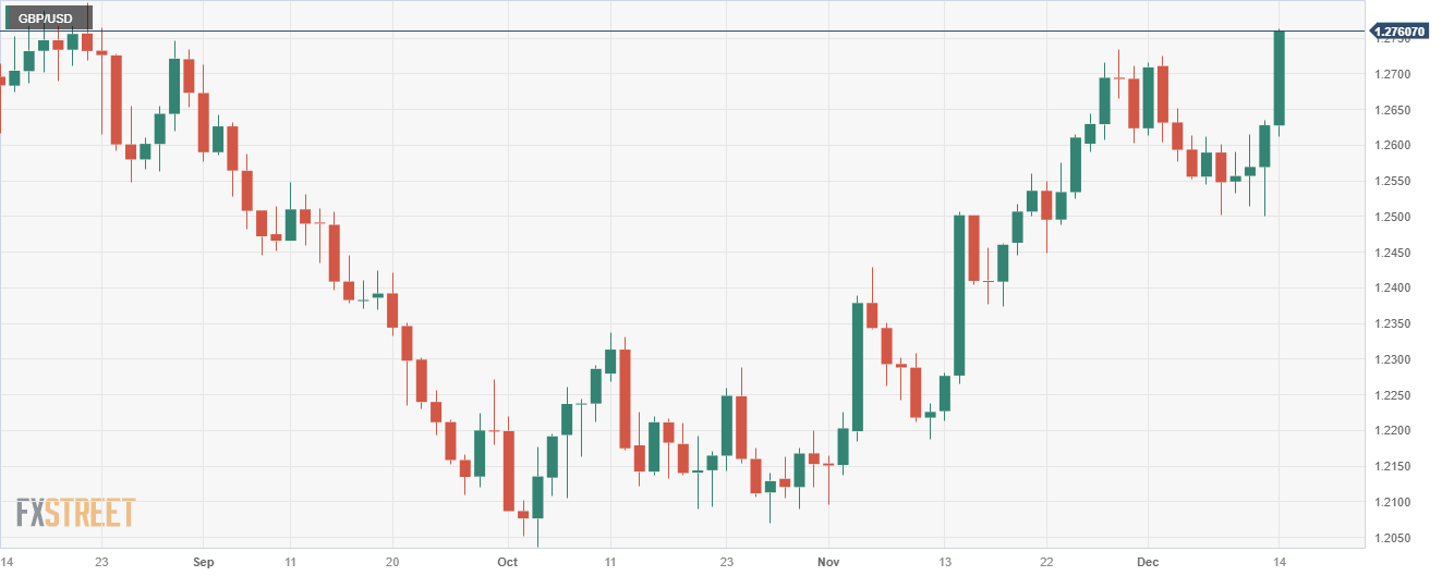 In Thursday's session, the GBP/USD pair surged after the Bank of England's (BoE) recent decision and jumped to its highest point since August at around 1.2755. The rapid ascend was largely motivated by the central bank's hawkish policy stance, which has boosted Sterling's value against the US Dollar.