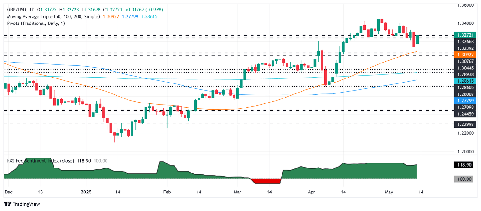 The Pound Sterling (GBP) recovered from Monday's losses and climbed over 0.35% against the US Dollar (USD) after the latest inflation report in the United States (US) kept traders' hopes high for further easing by the Federal Reserve (Fed). GBP/USD trades at 1.3226 after bouncing off a daily low of 1.3165.