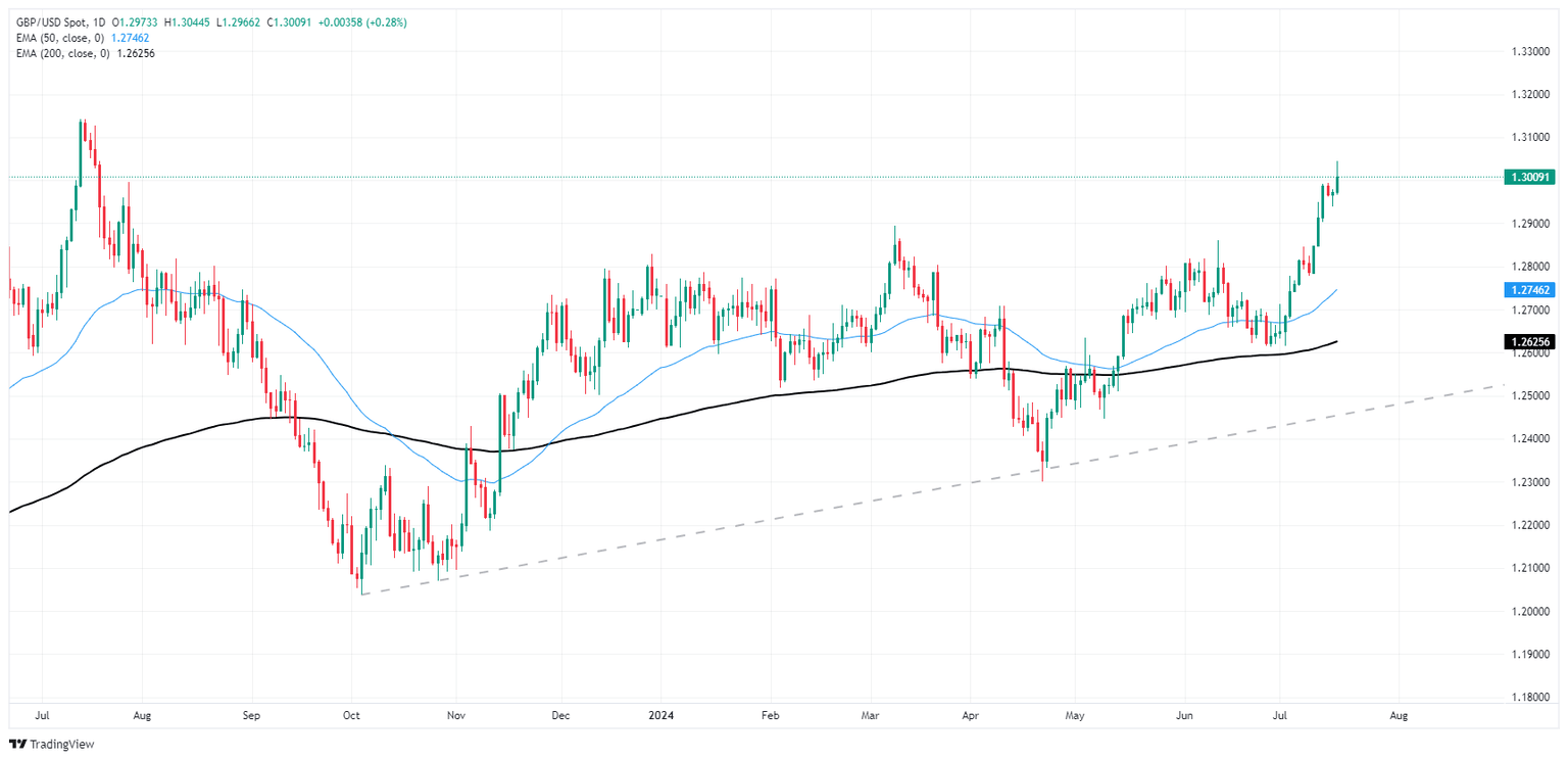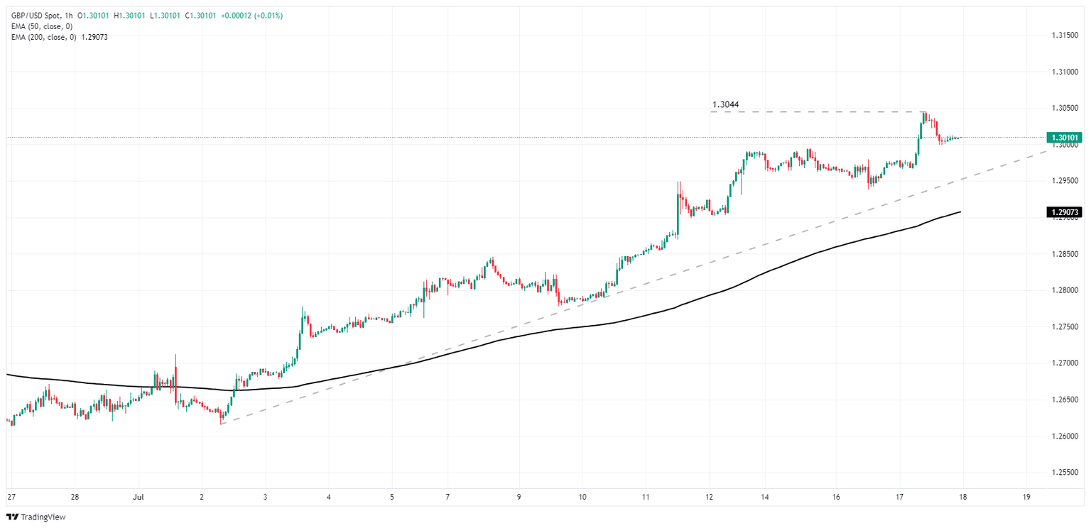GBP/USD inched further into fresh highs, testing chart territory north of the 1.3000 handle on Wednesday. Broad-market hopes of a rate cut from the Federal Reserve (Fed) in September kept the Greenback underbid and gave the Pound Sterling (GBP) a leg up in the mid-week market session. Recent Fedspeak has been interpreted as firmly dovish, with market participants seeing the writing on the wall they wish to as Fed officials give a head nod to recent progress on inflation measures. Cable traders will also want to keep an eye out for any knock-on volatility from the European Central Bank's (ECB) Thursday rate call.
