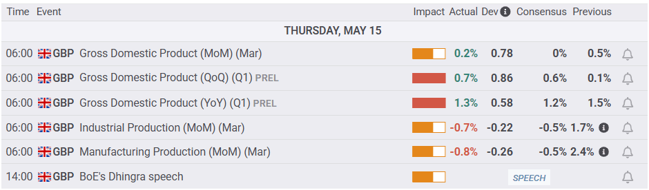Across the pond, Gross Domestic Product (GDP) figures suggested the economy is stronger than expected, exerting pressure on the Bank of England (BoE) to keep interest rates on hold. In the 3 months to March, GDP rose by 0.7%, up from 0.1% in the previous reading, bearing the 0.6% growth foreseen by economists and the BoE.