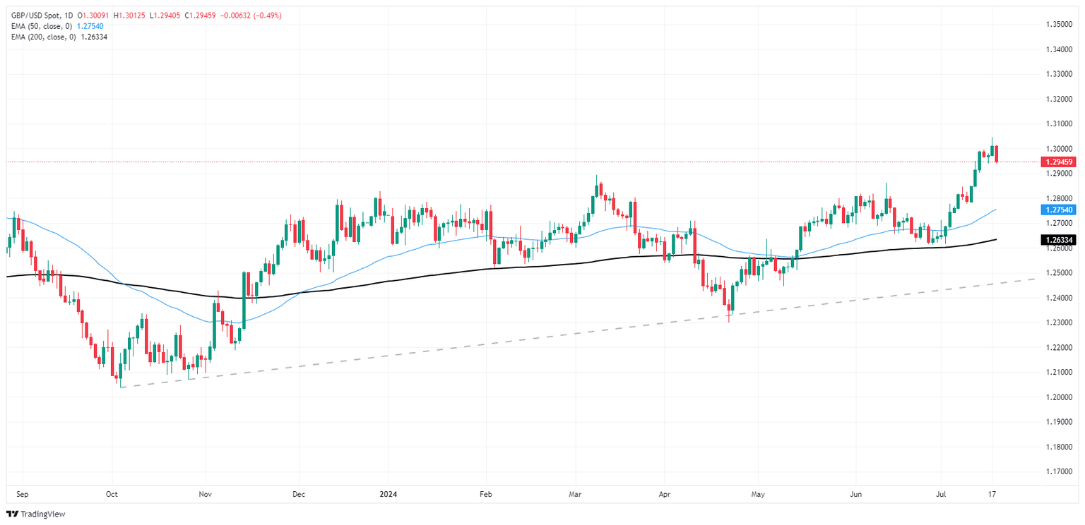 GBP/USD has settled back below the 1.3000 key level on Thursday as Greenback short pressures eases. Investors are taking a breather after a hard rally through the early trading week as market sentiment surged on Federal Reserve (Fed) rate cut expectations getting pinned to the ceiling.