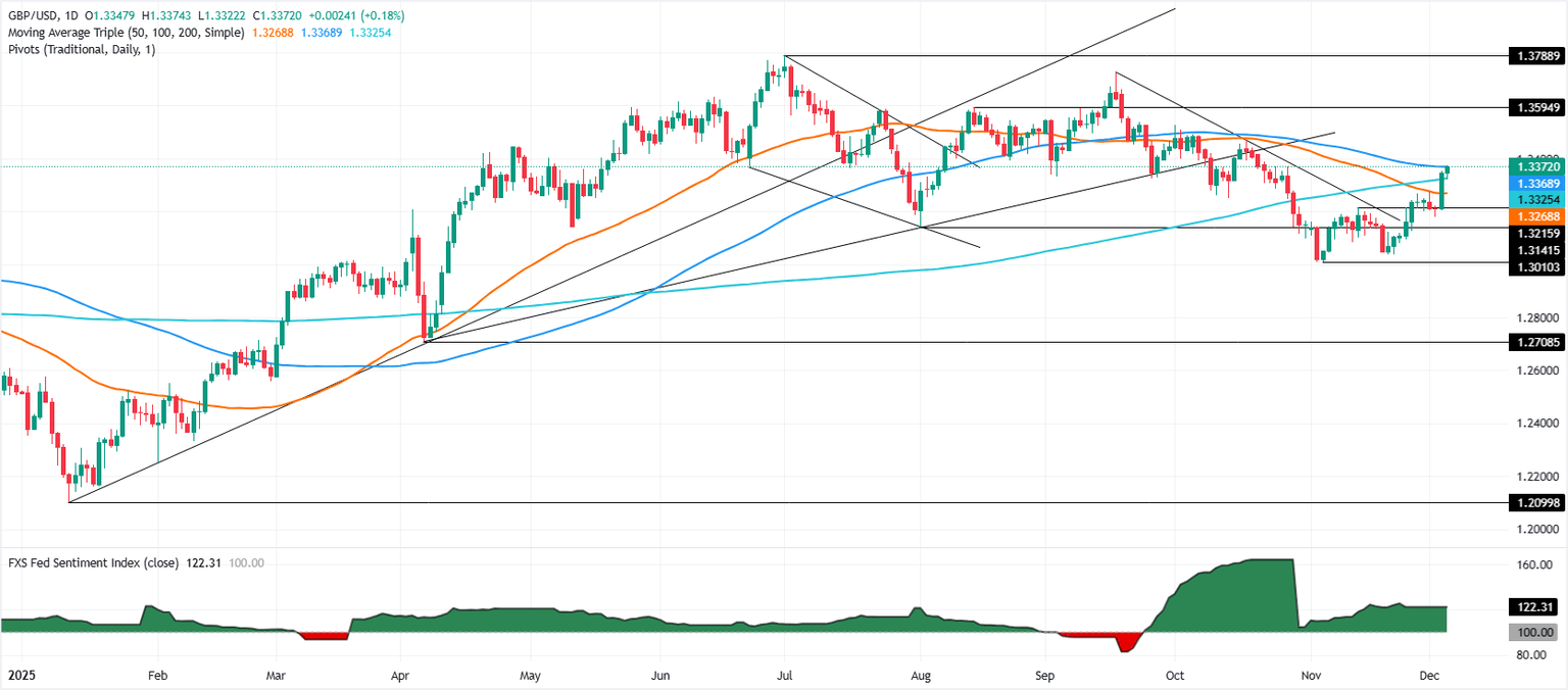 The Pound Sterling (GBP) rises against the US Dollar (USD) during the North American session on Thursday, even though US jobs data suggests that the labor market remains solid, and the expectations that the Federal Reserve (Fed) will cut rates remain high. At the time of writing, the GBP/USD trades at 1.3367, up 0.12%, its highest level since the end of October.