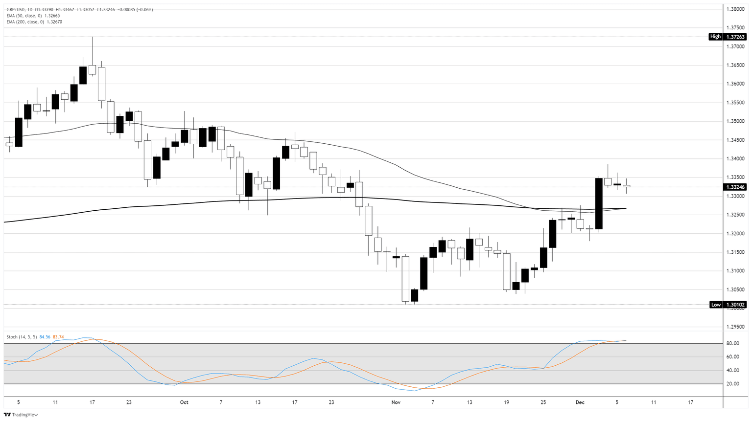 - GBP/USD churned just above the 1.3300 level on Monday.