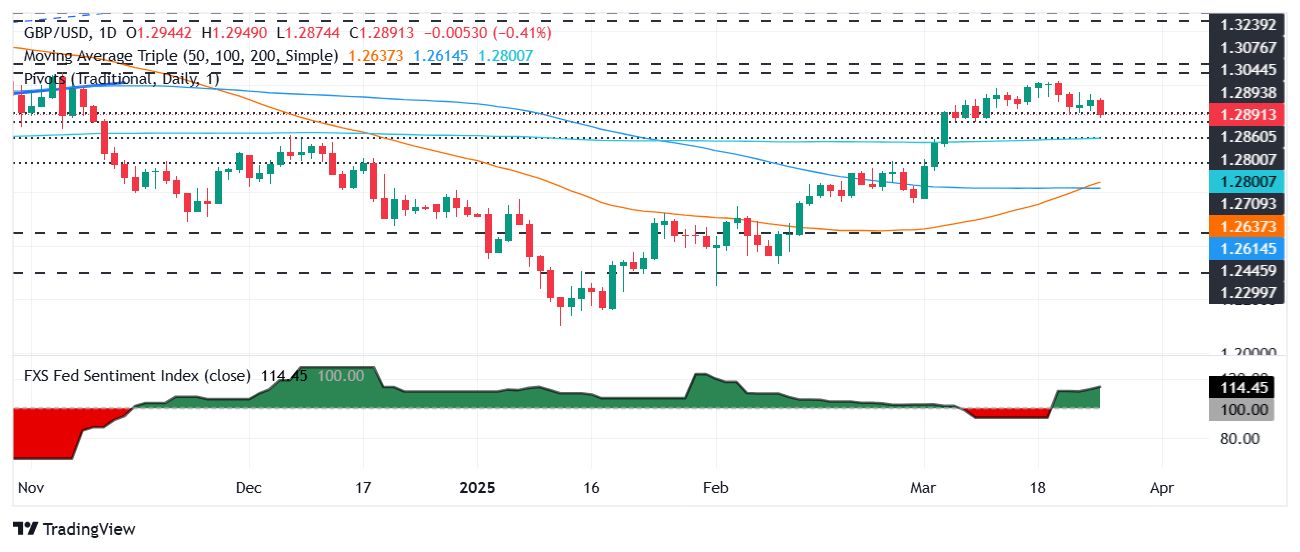 GBP/USD is retracing at the time of writing, with sellers eyeing a decisive break below the March 10 daily low of 1.2861, which, if cleared, could pave the way for a test of the 200-day Simple Moving Average (SMA) at 1.2800. If surpassed, the next stop would be 1.2700. Conversely, if GBP/USD rises past 1.2900, buyers could challenge the current week’s peak at 1.2973, ahead of the 1.30 mark.