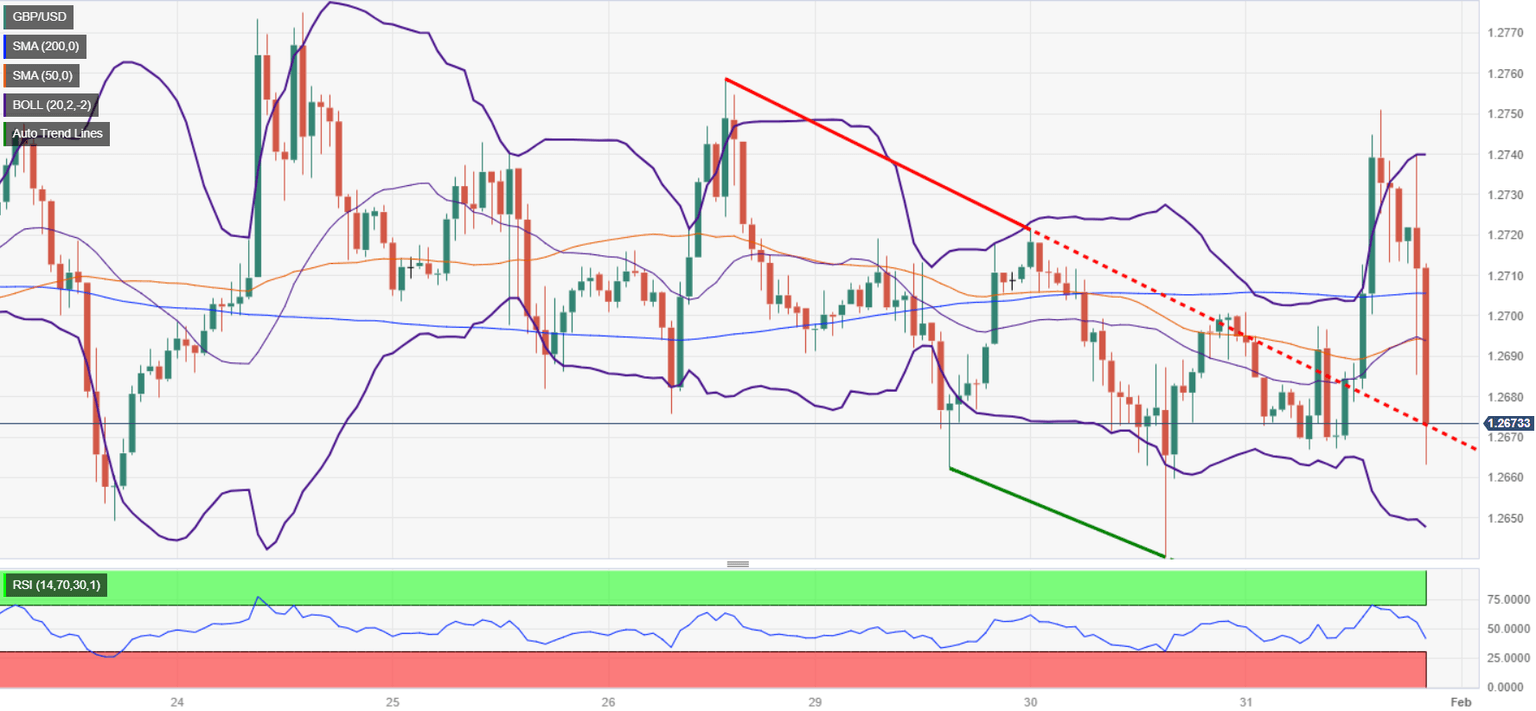The GBP/USD extended its losses late in the North American session, as the Federal Reserve (Fed) decided to keep rates unchanged, while Fed Chair Powell poured cold water on rate cut speculations for March. At the time of writing, the major trades were volatile, around 1.2660 – 1.2690, as Fed Chair Powell is taking the stance