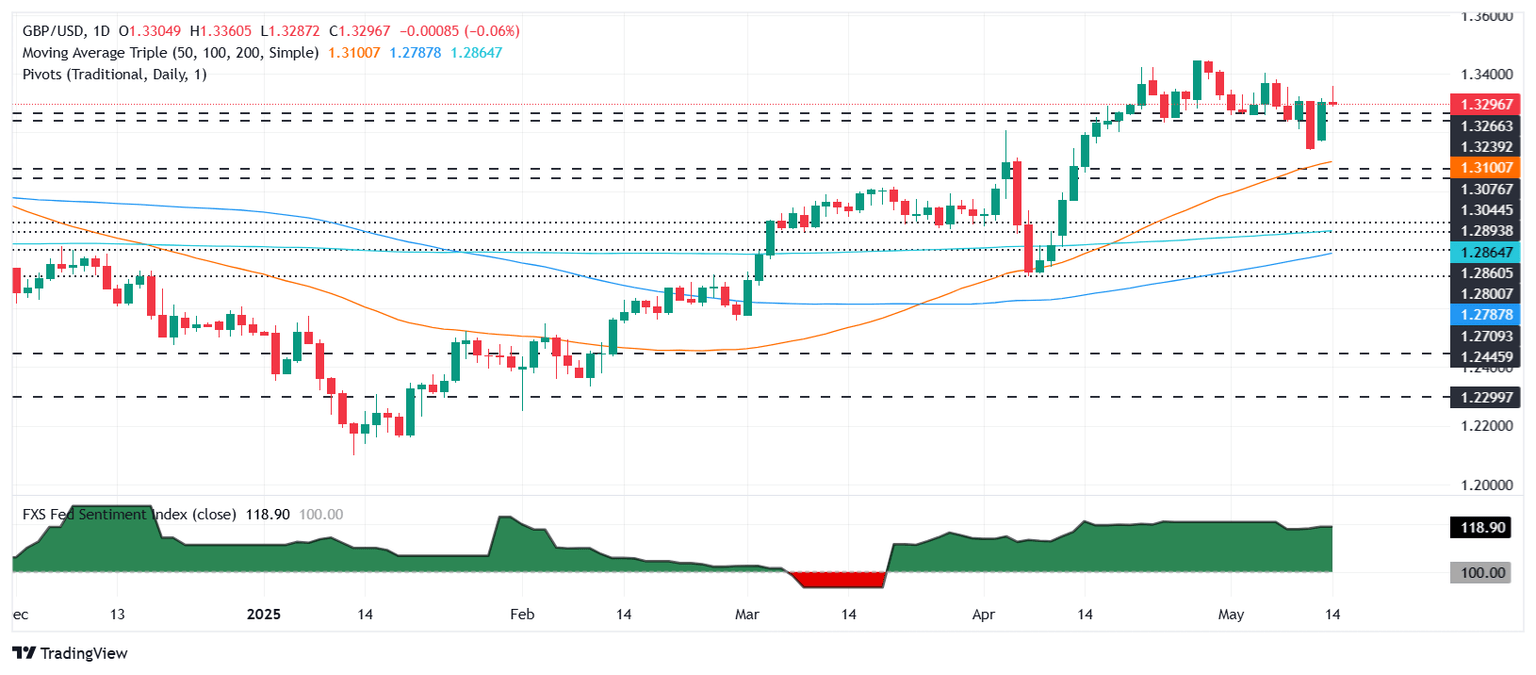 Conversely, a daily close below 1.33 clears the path for a pullback, with the next key support being the 1.3200 figure. A breach of the latter will expose the current week's low of 1.3139.