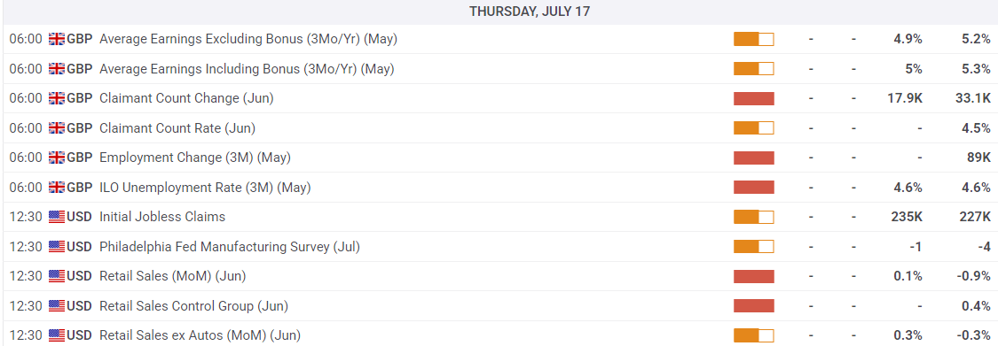 Coming up on Thursday, Cable traders will be facing down a fresh batch of UK labour data, followed by US Retail Sales figures. Key US consumer sentiment survey indicators on Friday will round out the trading week.
