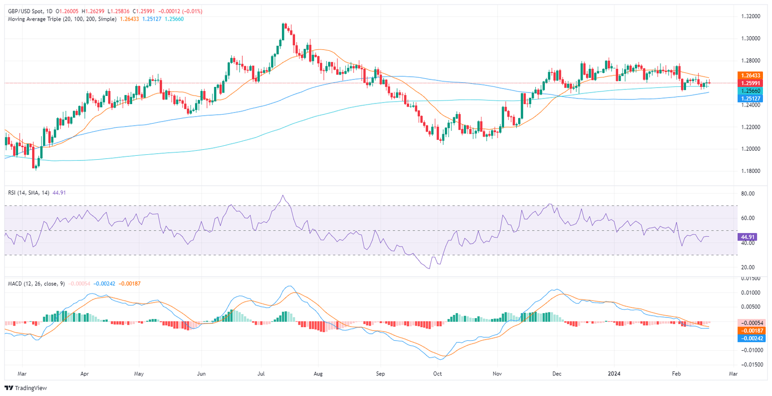 - The GBP/USD currently trades at 1.2597, marking mild losses in Monday's session.