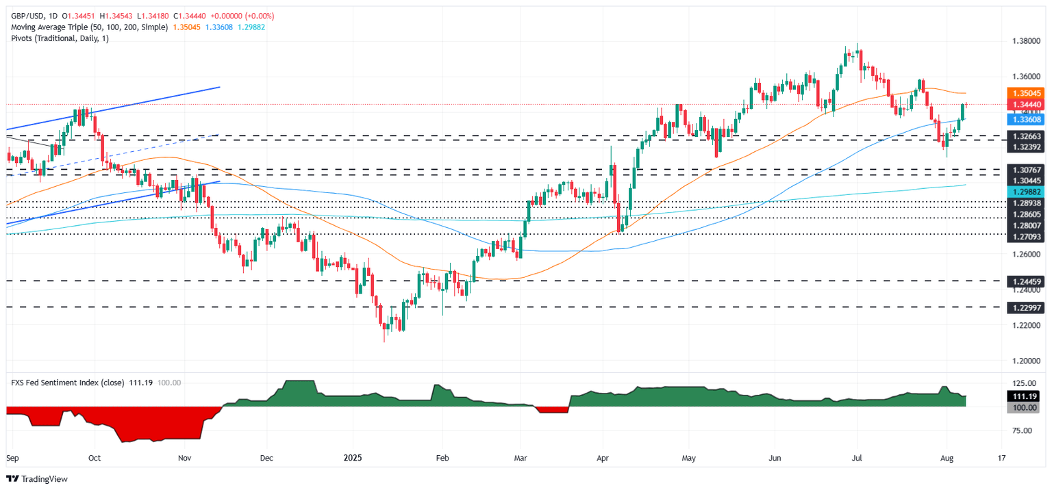- GBP/USD trades flat at 1.3437 as Dollar recovers modestly.