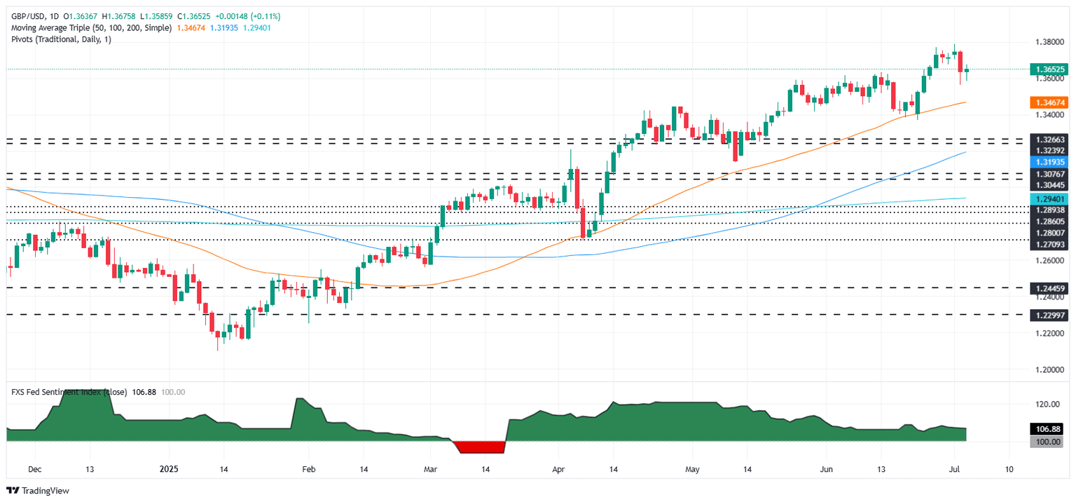 The Pound Sterling (GBP) remains steady against the US Dollar (USD) on Thursday, after a solid Nonfarm Payrolls (NFP) report in the United States (US) cemented the case for the Federal Reserve (Fed) to hold rates in July, as the Unemployment Rate ticked lower. At the time of writing, GBP/USD is trading at 1.3634, virtually unchanged.