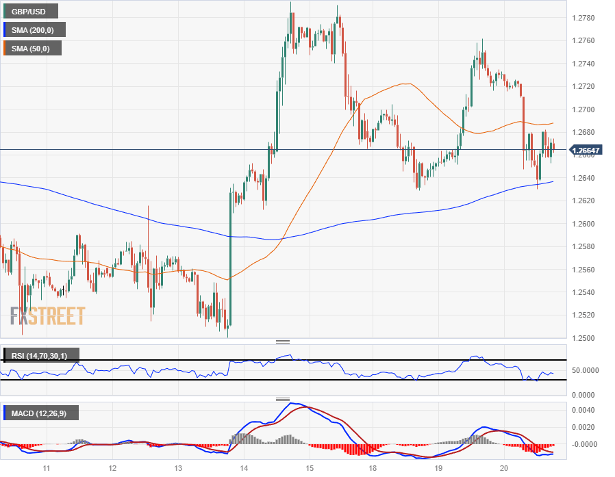 The Pound Sterling’s decline against the US Dollar saw the GBP/USD decline into the 200-hour Simple Moving Average (SMA) near 1.2635, and a limited rebound sees the pair constrained in the midrange between the 200-hour SMA and the 50-hour SMA near 1.2690.
