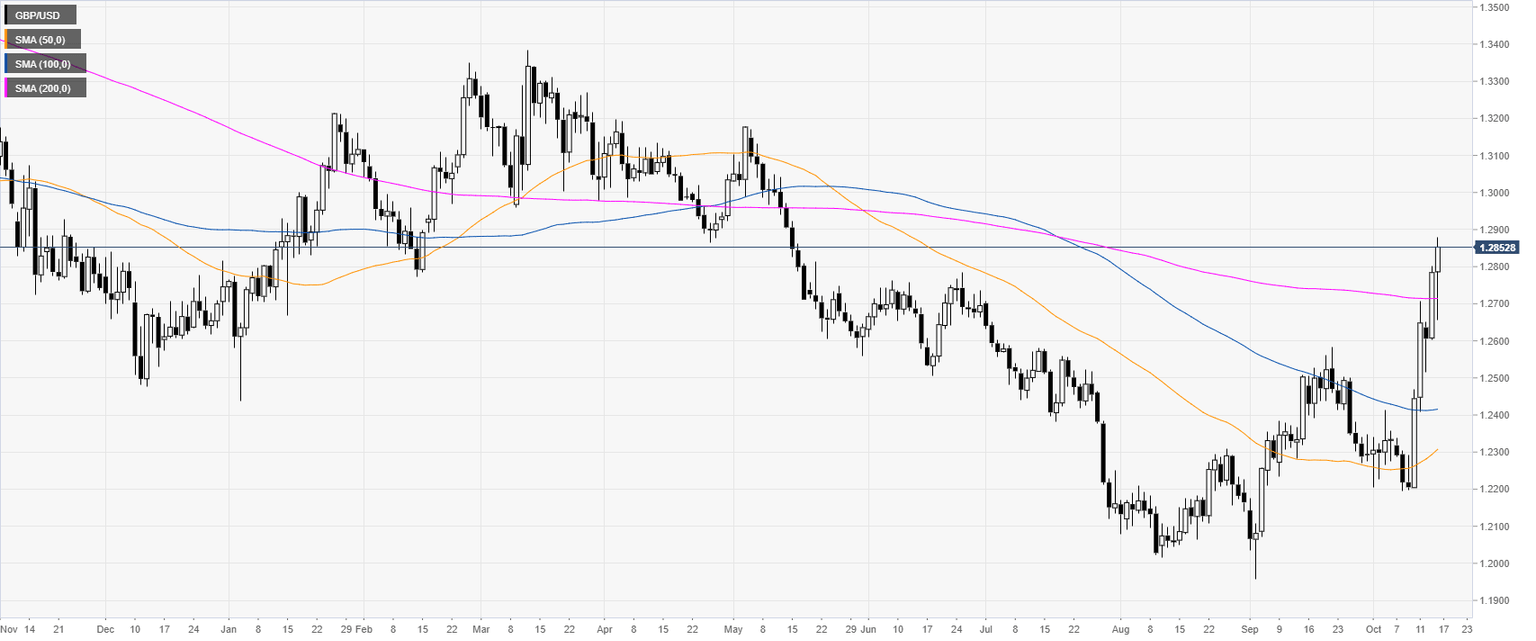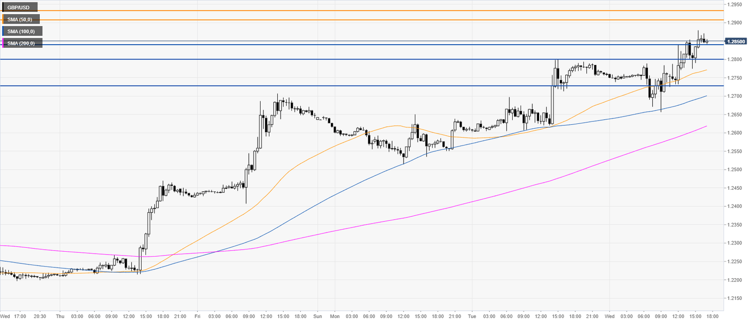 GBP/USD is clinging to daily and monthly highs while trading above the main SMAs. The intense bullish pressure can see the 1.2907/1.2934 and 1.3000 figure challenged in the coming sessions.