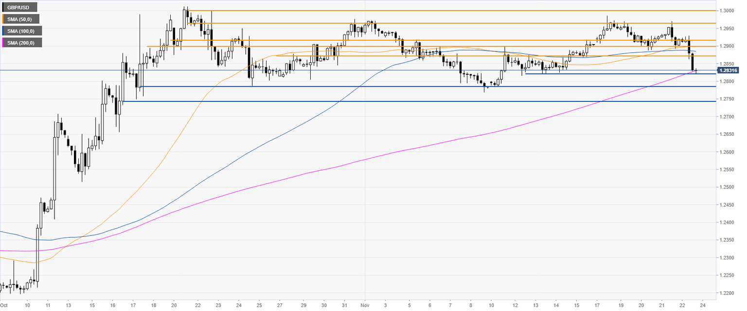 GBP/USD is rejecting the 1.2900 handle as the market is easing from the November highs. The spot is trading well above its main daily simple moving averages (DMAs).