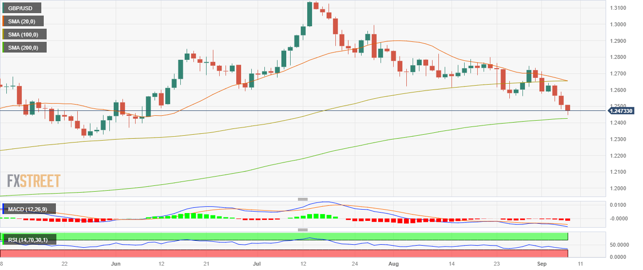 - GBP/USD declined for a third consecutive day towards the 1.2470 area.