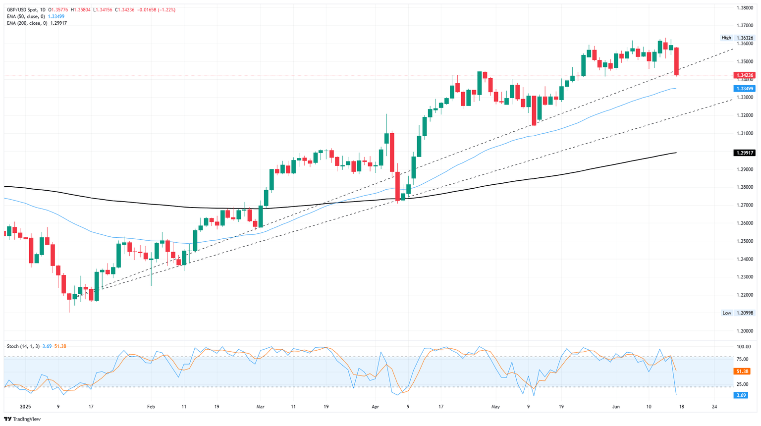 GBP/USD plummeted over 1.2% on Tuesday, backsliding through near-term congestion and popping out the other side near the 1.3400 handle after global investors were knocked off their pre-seeded hopes that the Israel-Iran altercation would find a quick and peaceful resolution.