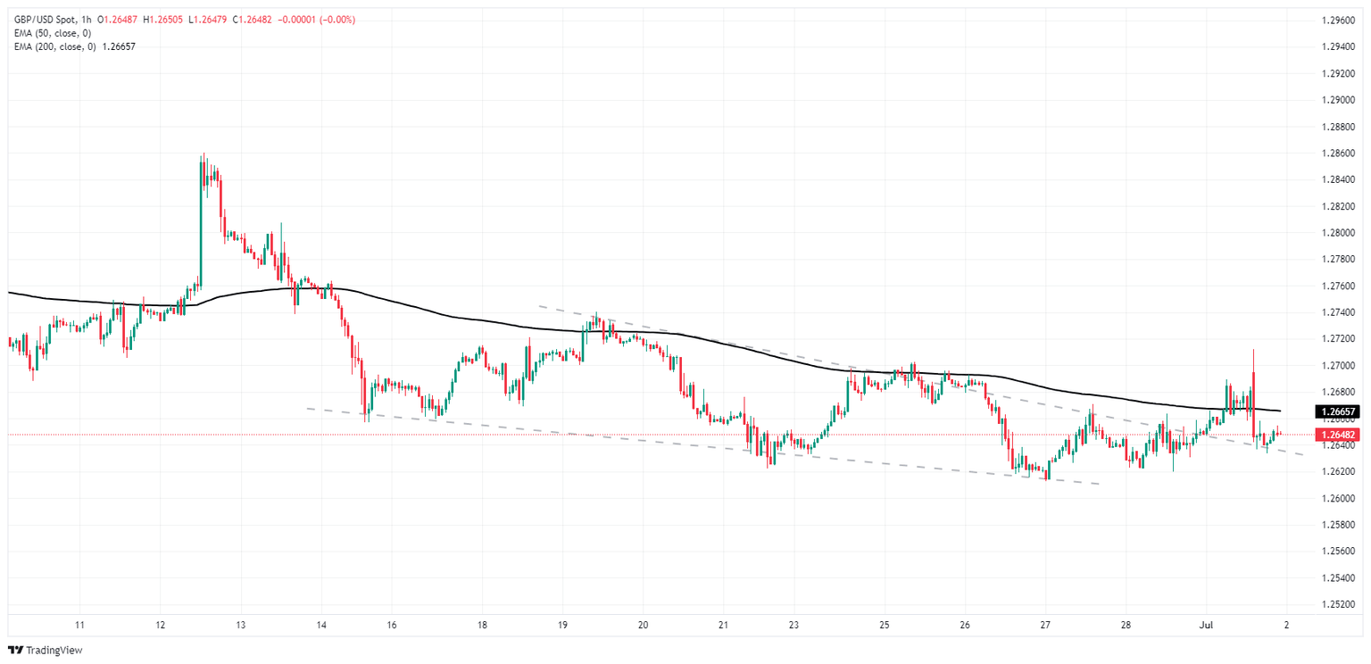 Despite a near-term bull run to kick off the new trading week, Cable bidders were unable to keep the pressure up, and GBP/USD tumbled back below the 200-hour Exponential Moving Average (EMA) at 1.2665. Price action still favors shorts, and downside targets will be set below last week’s late low near 1.2615.