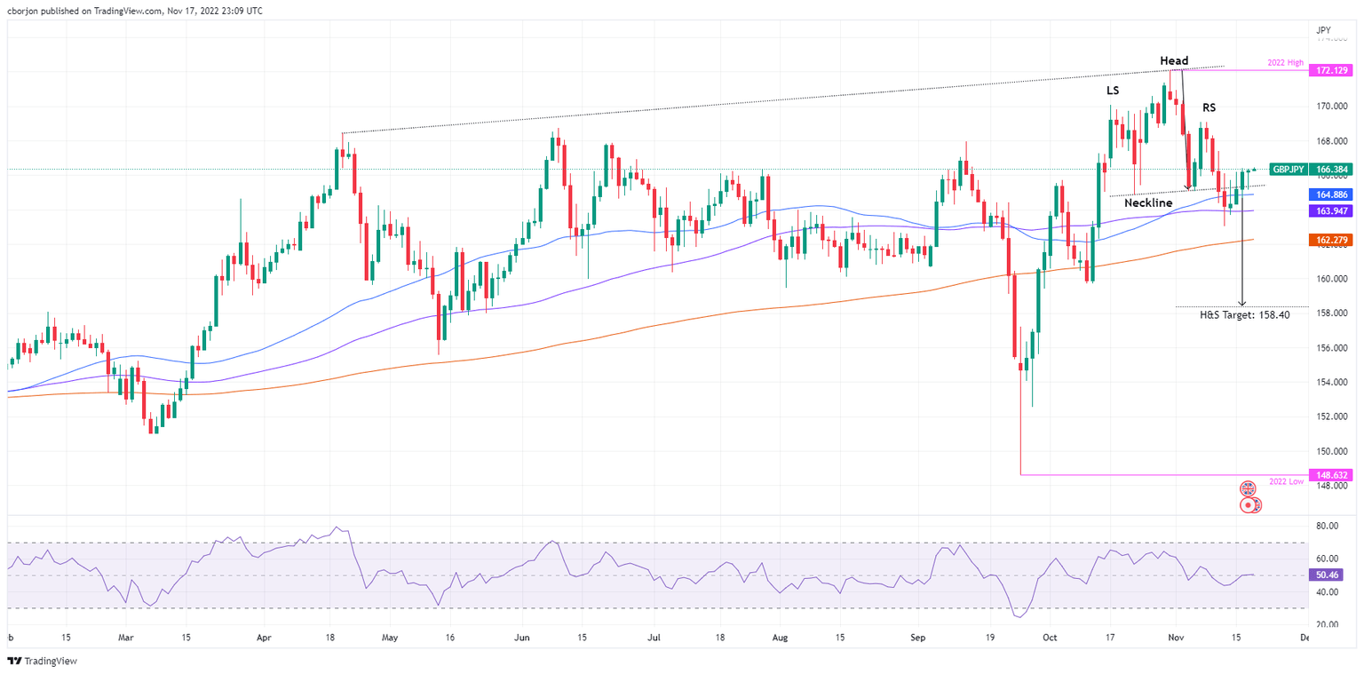 On the flip side, if GBPJPY sellers want to reclaim the head-and-shoulders neckline, they need to break below 165.30. A breach of the latter would send the pair diving to the 165.00 figure, followed by key support levels, like the 50-day EMA at 164.88 and the 100-day EMA at 163.94.
