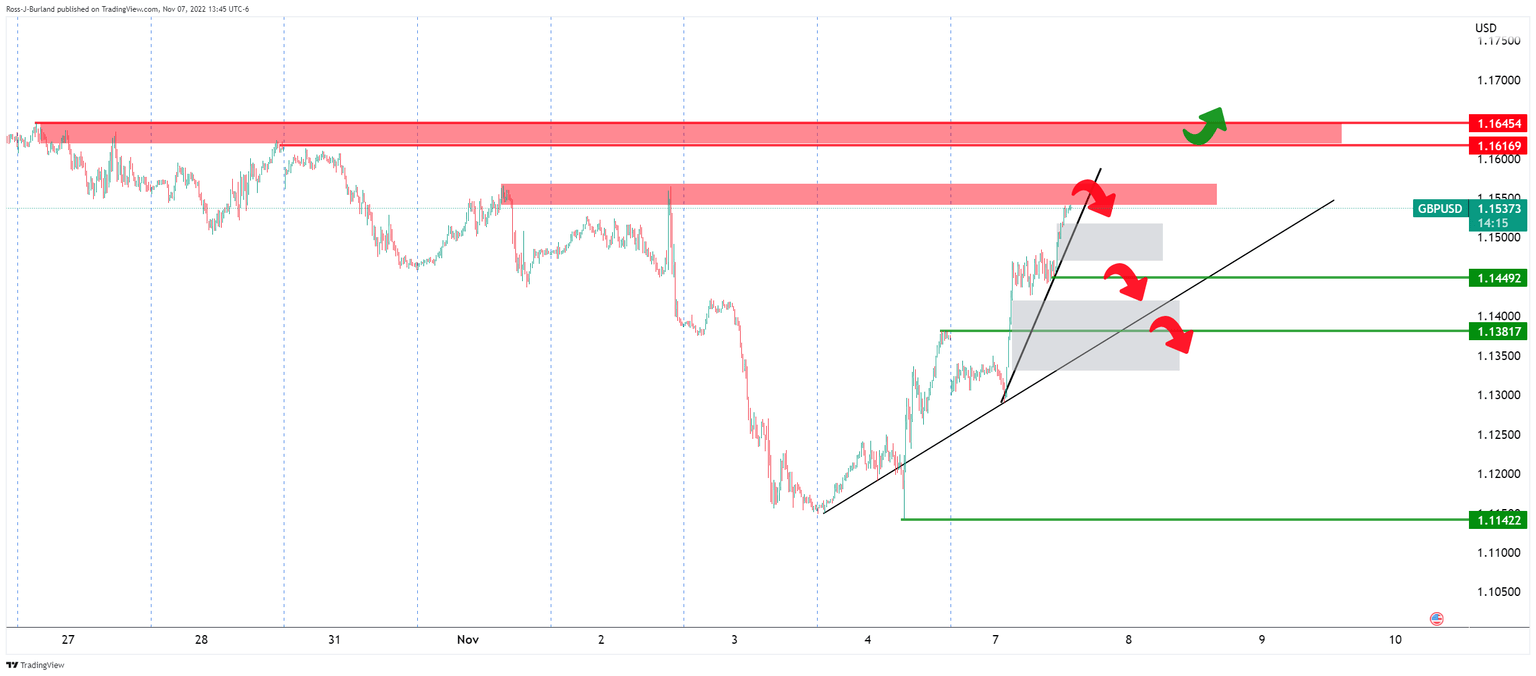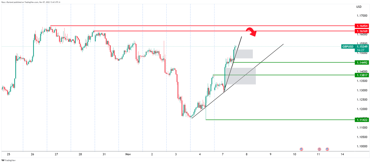 The hourly charts show the price firmly bid with eyes towards last week's highs and then last month's highs in the 1.1616 area and 1.1645s.