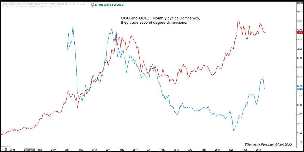 As we can see from the chart above, they trade on the same side, and share almost identical highs/lows. This makes us believe that Oil is also nesting, and higher prices will come in the coming years. GCC as a commodity fund also relates to Gold and Silver, as we show in the following chart: