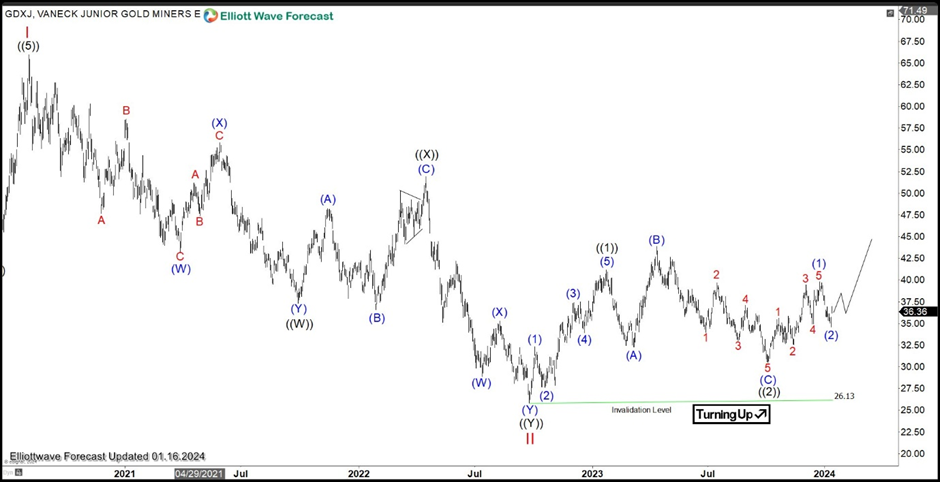 GDXJ is an ETF tracking small-cap gold and precious metals mining companies. It has a focus on smaller, more volatile firms. Thus it offers exposure to this precious metal sectors, but investors should be cautious of increased risk. In this article, we will update the Elliott Wave outlook for the ETF.