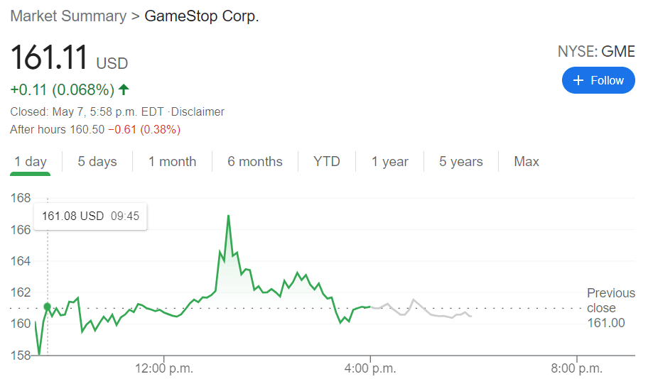 - NYSE: GME gained 0.06% as the broader markets rebounded to close out the week.