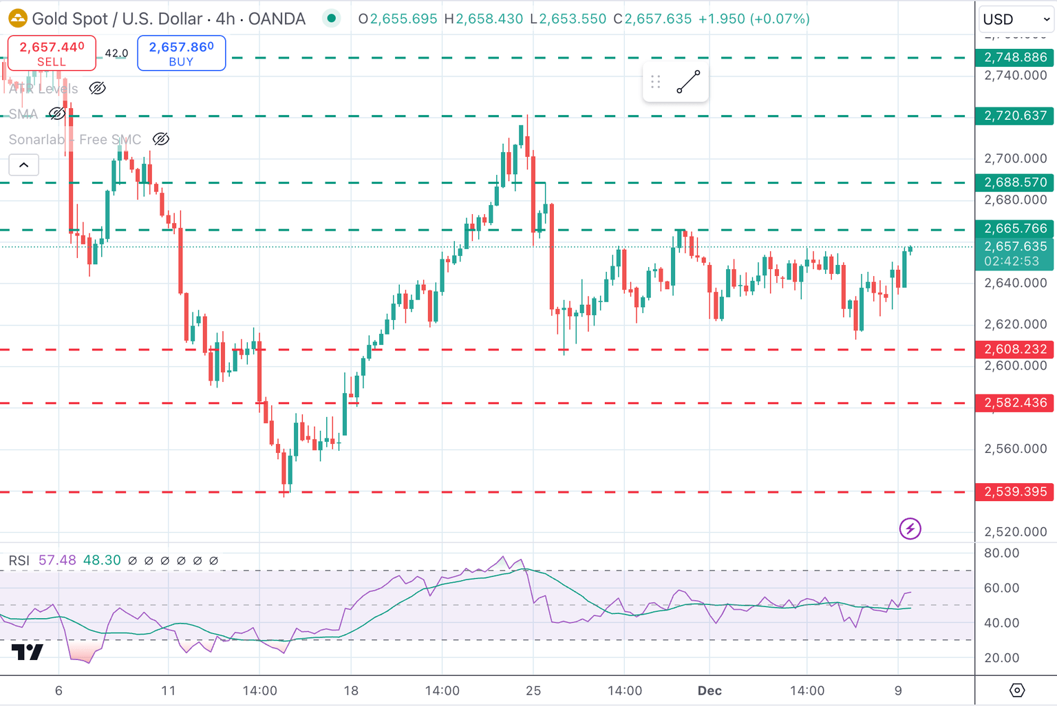 Gold is showing an increasing bullish momentum on Monday as the positive trend from last week's lows gathers steam. With fundamentals in its favour, the pair is currently battling to confirm a bullish breakout of the top of the last two weeks’ channel at $2,665, trading a couple of $ above it.