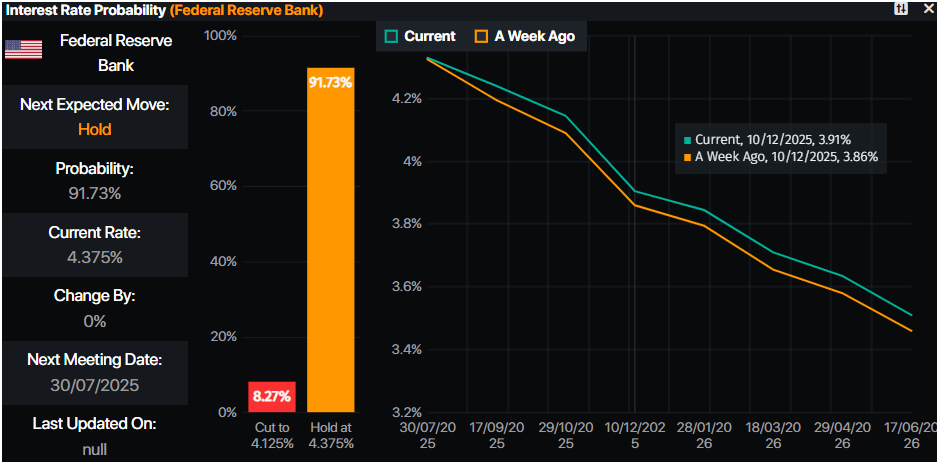 - Money markets suggest that traders are pricing in 46 basis points of easing toward the end of the year, according to Prime Market Terminal data.
