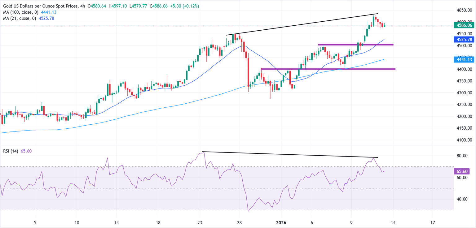On the upside, a sustained move above $4,600, followed by a break of the all-time high near $4,630, could pave the way for gains toward $4,700-$4,750.