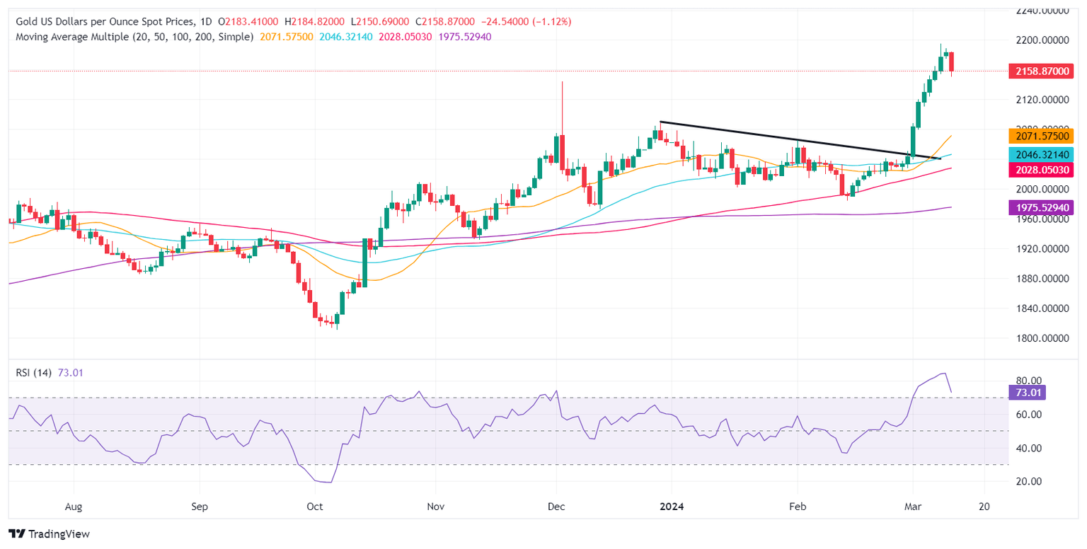 As mentioned on Monday, “Gold’s rally appears overextended after extending toward the $2,180.00 figure.” Therefore, XAU/USD traders capitalized on their gains by booking profits following strong US data that suggests the battle against inflation isn’t done.