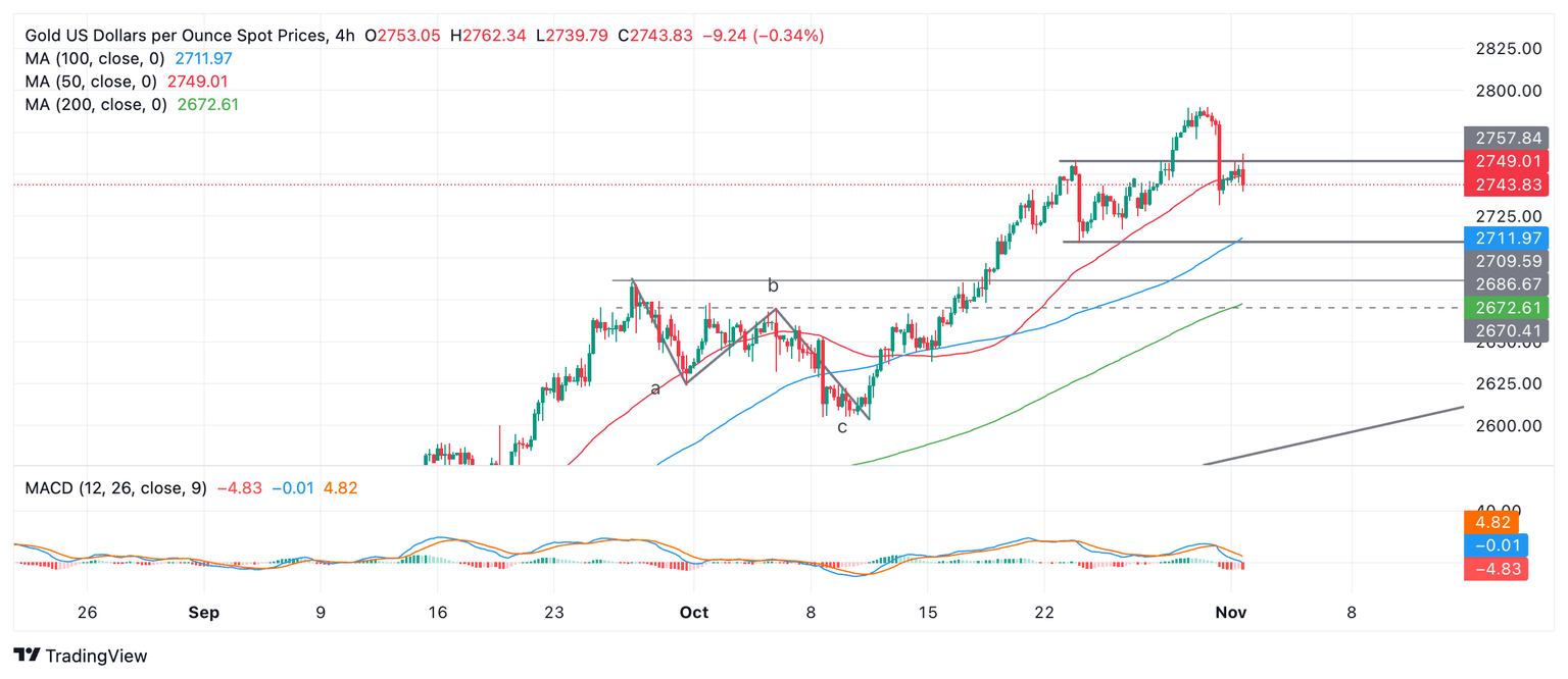 Gold (XAU/USD) edges lower during a voltile trading day on Friday. The precious metal briefly rose to the $2,760s after the release of US Nonfarm Payrolls (NFP) data showed a decline to only 12K in October, falling well below the 113K expected and the revised-down 223K of September. However, it has since sold off to the $2,740s.