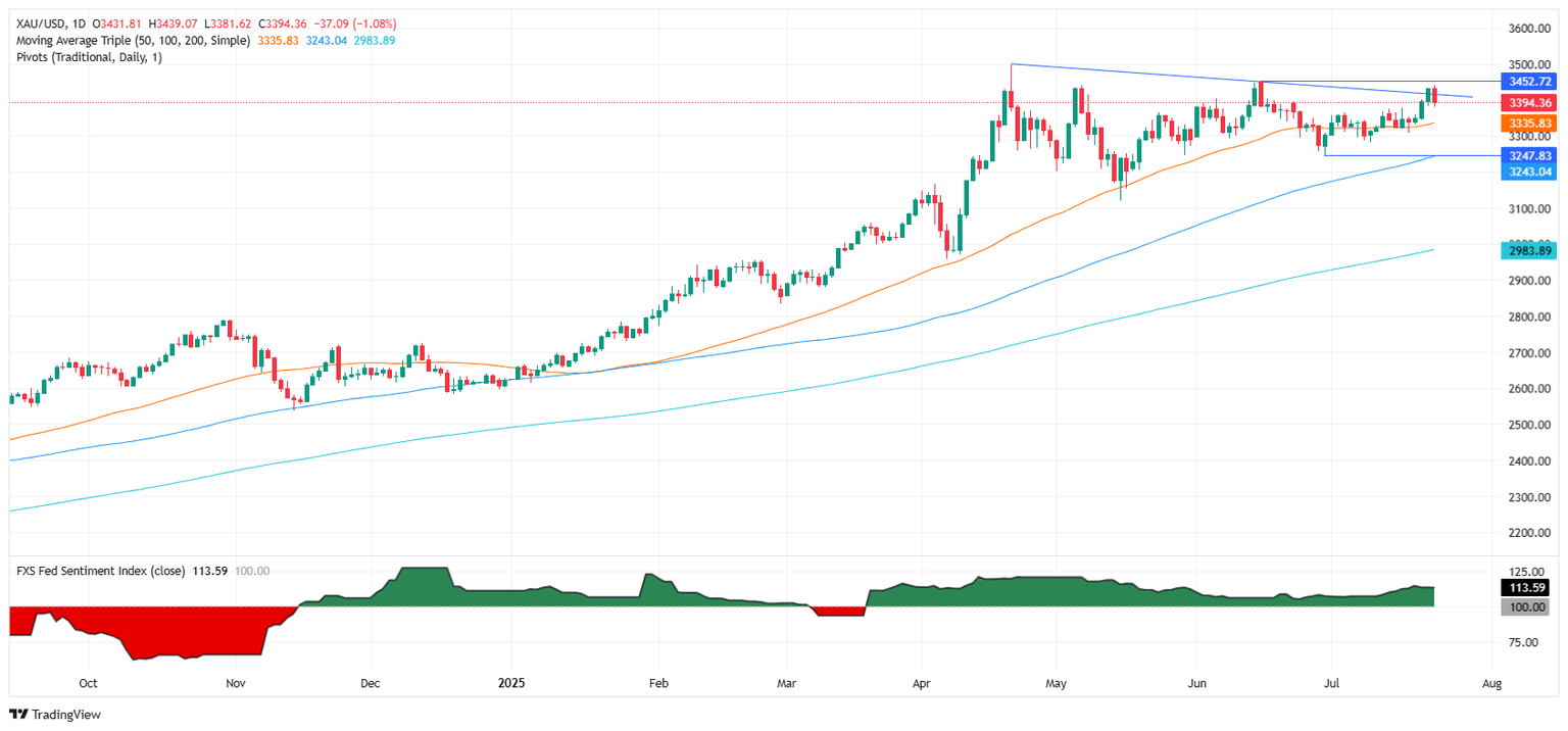 XAU/USD technical outlook: Gold price to consolidate below $3,400