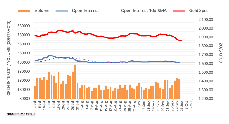 Gold prices dropped for the fourth session in a row on Thursday, briefly visiting the $1860 region after staging a tepid rebound. The downtick was on the back of declining open interest and volume and leaves the door open to a potential rebound in the very near term. In the meantime, the $1860 region per troy ounce seems to hold the downside for the time being.
