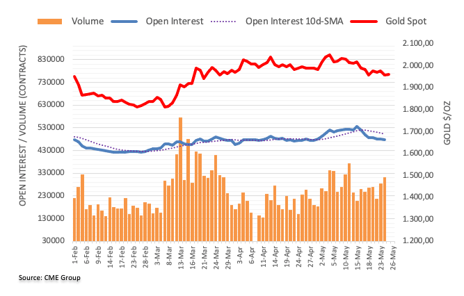 Wednesday’s marked pullback in gold prices was on the back of shrinking open interest, which hints at the idea that a sustained drop seems not favoured for the time being. On the downside, in the meantime, there is decent contention around the $1950 region per ounce troy.