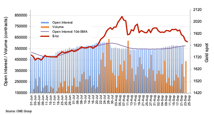 Gold prices remain on the defensive amidst rising open interest and volume, opening the door to the continuation of the downtrend in the very near-term. That said, the next interim support emerges at the Fibo level (of the June-August rally) at $1,825.31.