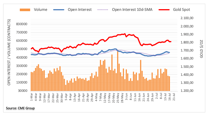 Open interest in gold futures markets dropped for the second session in a row on Friday, this time by around 5.2K contracts considering flash data from CME Group. Volume, in the same line, shrank for the third straight session, now by around 8.8K contracts.