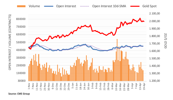 Tuesday’s uptick in gold prices was on the back of a small increase in open interest and a sharp drop in volume, opening the door to some consolidation in the very near term. So far, the $2050 region keeps limiting occasional bullish attempts, while the $1980 zone holds the downside.