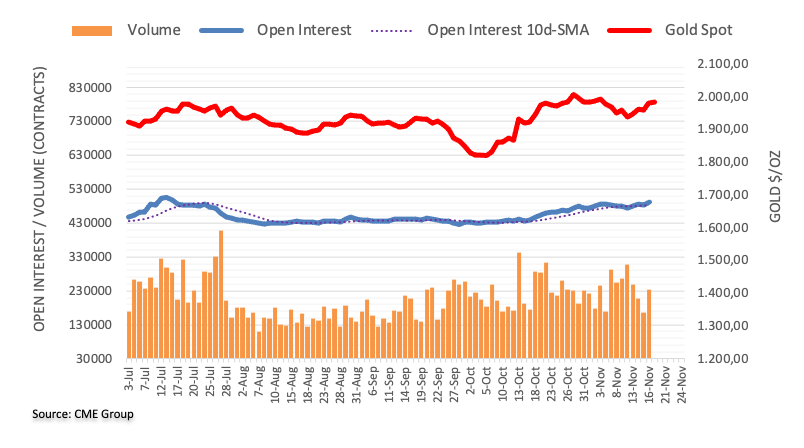 Gold prices rose to multi session highs just above the $1980 mark per troy ounce on Thursday. The uptick was on the back of increasing open interest and volume, leaving the door to open to extra gains in the very near term. Against that, the key barrier for bulls still emerges at the $2000 mark.
