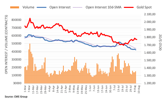 Open interest in gold futures markets remained erratic on Friday and dropped by nearly 7K contracts, according to preliminary readings from CME Group. On the other hand, volume reversed two daily drops in a row and increased by around 13.3K contracts.
