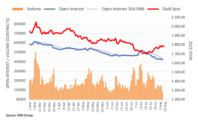 Open interest in gold futures markets remained choppy and went up by nearly 1.1K contracts on Monday according to preliminary readings from CME Group. Volume, instead, shrank by around 69.7K contracts, reversing the previous day’s build.